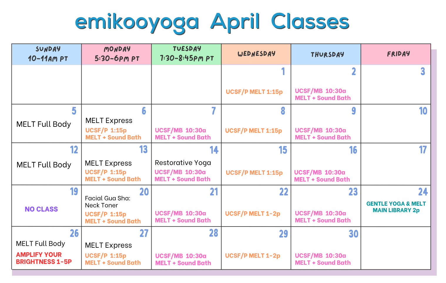 Take a livestream group class with emiko and experience the spaciousness and release your body and mind are craving.